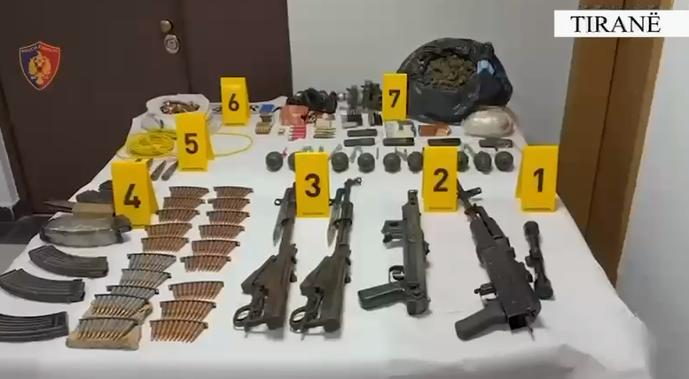 Gjatë kontrolleve të kryera në një banesë në fshatin Zall, Fushë Krujë, u zbulua një arsenal të madh armësh, lëndësh plasëse dhe municionesh, përkatësisht: