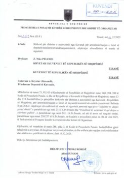 Kjo kërkesa mban firmën e kreut të SPAK Altin Dumani, i cili e mbyll mandatin më 19 dhjetor 2025, ndërsa shkresa është bërë pasi Gjykata Kushtetuese riktheu në detyrë Ballukun, të Premten.